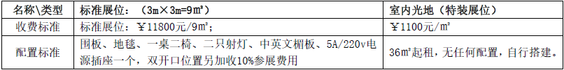 1、展位收费标准